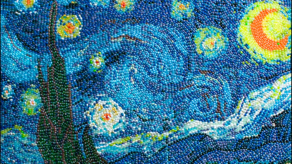 Shellie likes to make famous and recognized art in her own and creative way by remaking the Starry Night painting. If you look closely she made out of one of her favorite treats: Jelly Belly Jelly Beans